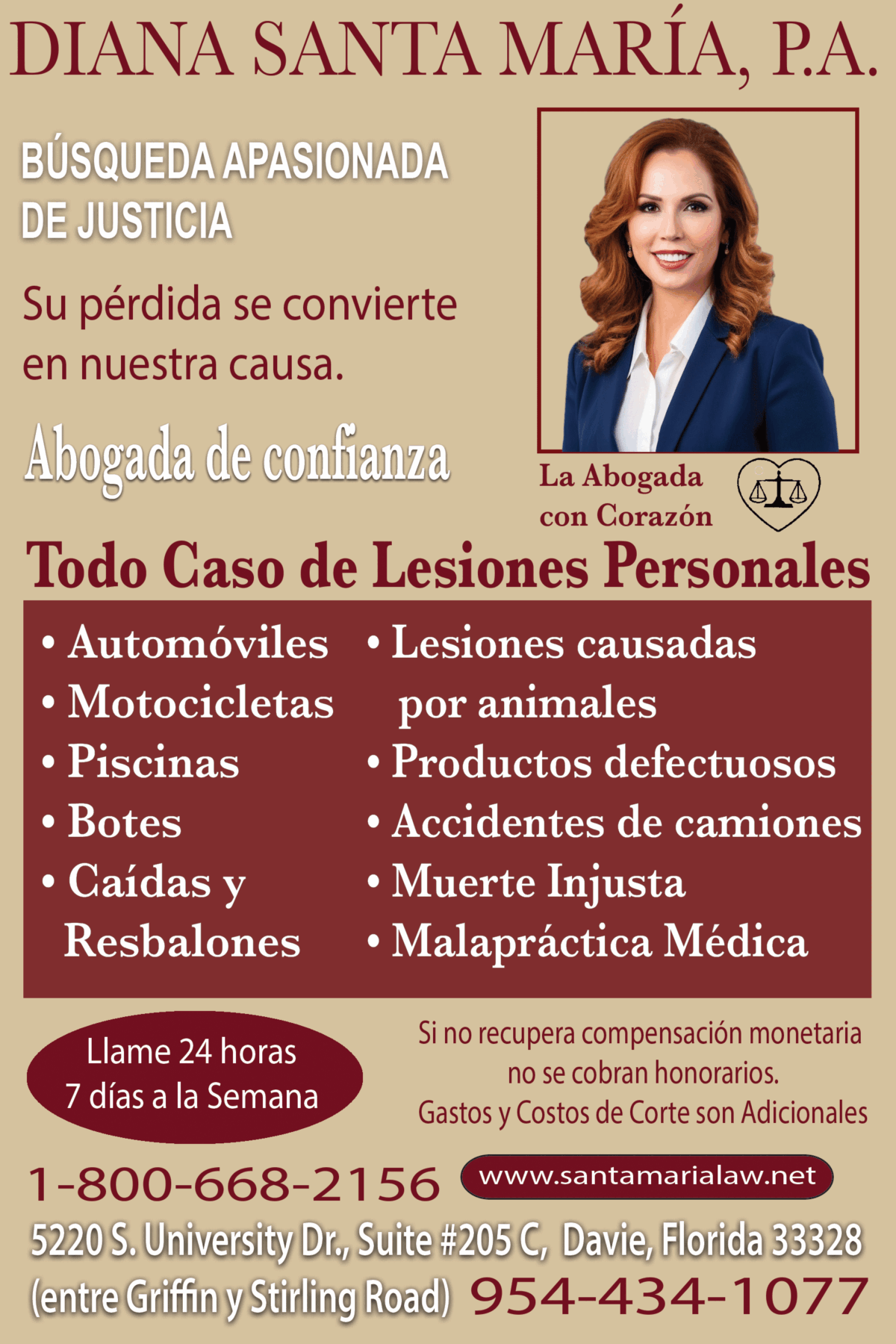 Categoría Abogados 5220 S. University Dr. Suite 205 Ciudad Davie ZIP Code 33328 Website https://www.santamarialaw.net/ Teléfono 954-434-1077 Email ddiana9law@aol.com