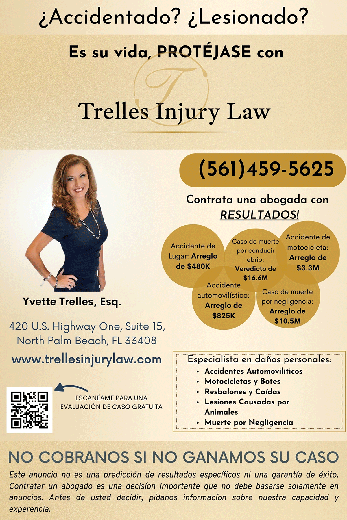 Categoría Abogados 420 US Highway One Suite 15 Ciudad North Palm Beach ZIP Code 33408 Website https://www.tbinjurylaw.com Teléfono 561-459-5625 Email ytrelles@tbinjurylaw.com Description Fax 561-459-5624