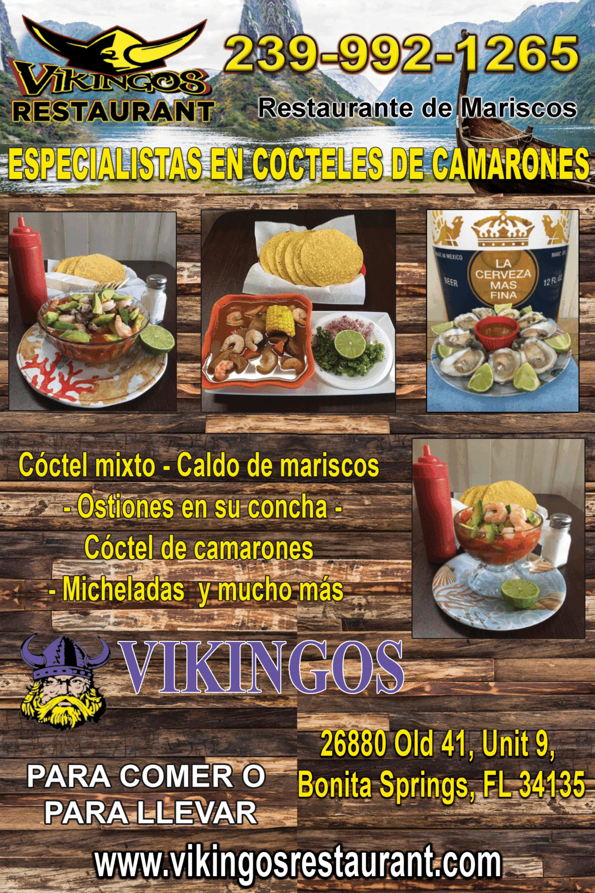 Categoría Restaurantes 11485 Tangerina Dr. Ciudad Bonita Springs ZIP Code 34135 Website https://www.vikingosrestaurant.com Teléfono 239-601-8852